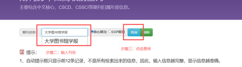 使用指南:图书馆主页-期刊查询-输入刊名,点击查看结果