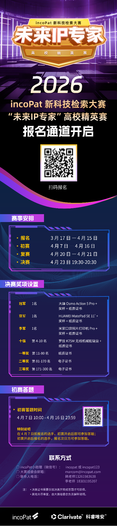 第八届incoPat新科技检索大赛——“未来IP专家”高校精英赛报名已正式启动,欢迎大家踊跃报名参赛!